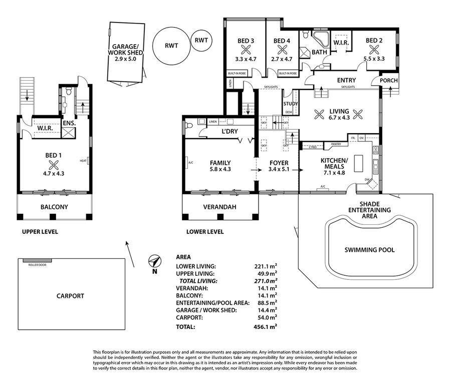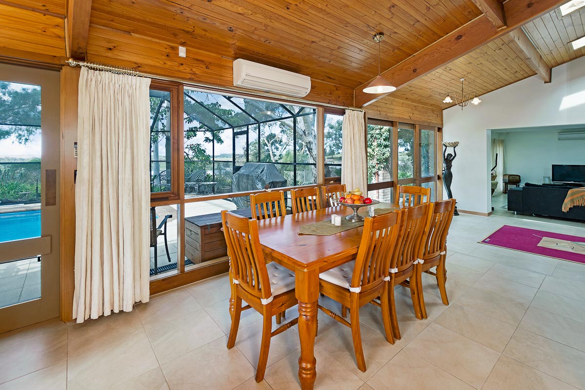 Measuring approximately 3500sqm in size and boasting 4 bedrooms, 2 bathrooms and 2 living areas, here is a rarely seen listing for those looking for privacy, luxury and ample room right in the heart of the town. The property on the outside has a grassed tennis court, shade cloth covered enclosed swimming pool, an undercover carport for 4 vehicles and shed approximately 30 x 15. Manicured gardens with natural tall gums on boundaries compliments an impressive outdoor setting. The home has a massive open planned country style kitchen with centre working bench, adjoining dining area for the largest of families, 2 more large living areas on different levels with the third level reserved for 3 large bedrooms, all with built-ins and or walk-in robe, surrounding the main bathroom and an office come storage area. The main bedroom has a level of its own, large in size and with its own private balcony capturing river views from its raised location, ensuite and walk-in robe area. 2 split system A/C's more than adequately comfort control the large home. The workmanship in this property is built to last the test of time, it's comfortable, roomy and efficient for luxury living.