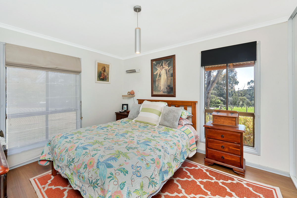 Sitting on a manageable allotment of approximately 3394sqm, this renovated late 70's home has the features and comforts of the country lifestyle, whilst enjoying the modern luxuries expected by most. The 4-bedroom 9 (all with built-ins) home boasts vaulted ceilings throughout, open planned living flowing through to the modern, well-appointed open kitchen/dining area with custom American Oak cabinets. Comfort controlled with split system air conditioning along with the "compulsory" slow combustion heater for those chilly winter nights. Numerous outdoor living/entertaining areas capture the magnificent surrounding rolling hills with plentiful bird life to gaze upon on those lazy days in the sun.