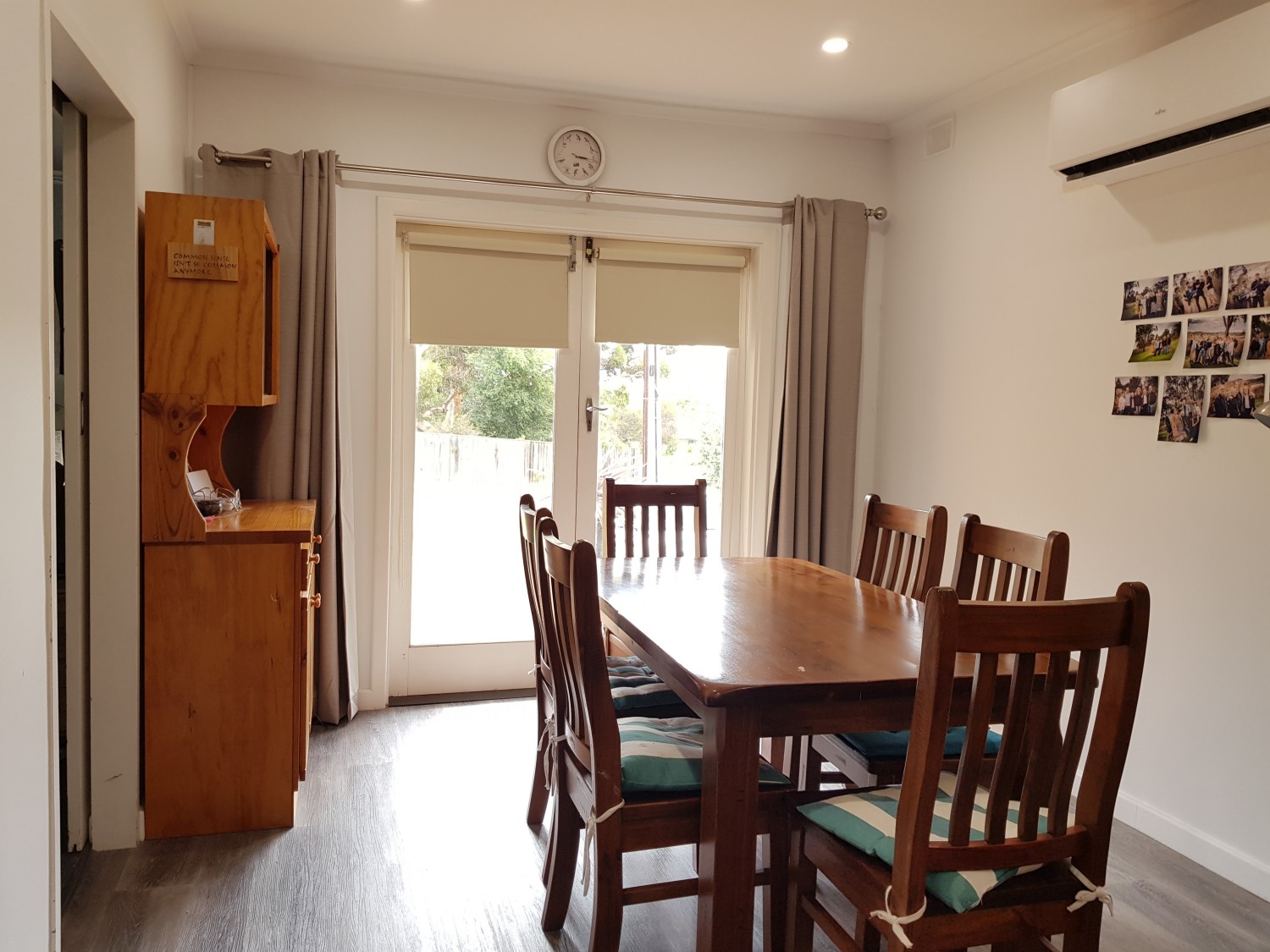 Glass sliders open to a light filled lounge room, the adjoining open plan kitchen / dining has french door access to a paved terrace. Generously proportioned rooms and high ceilings typical of the era, air-conditioning, combustion heating, ample built in storage and recently upgraded floor coverings, .