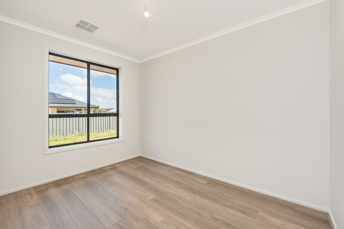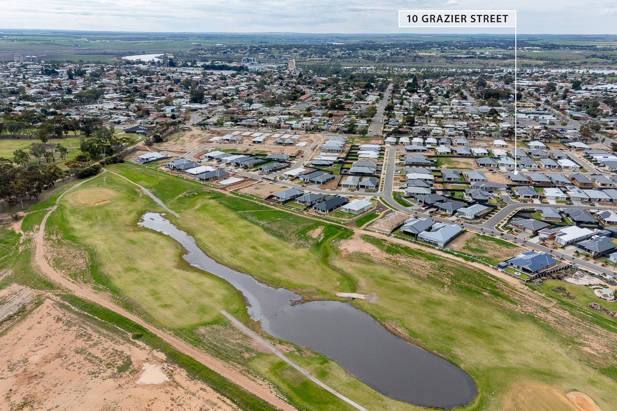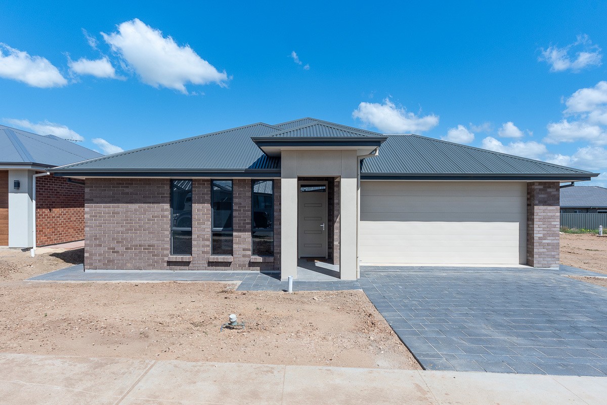 Situated in the 'Newbridge Estate' ... a residential community set in the green heart of Murray Bridge, within an easy walk of the CBD and right alongside the fairways of Murray Bridge Golf Course. Welcome to 10 Grazier Street.... Modern styling and luxe fixtures! This brand new construction is move-in ready... A spacious 4/5 bedroom family home boasting 2700mm ceiling height and ducted reverse cycle air-conditioning. Comprising an entrance passage with internal garage access, a plush home theatre or formal lounge, spacious open plan living/dining with 'hybrid flooring' incorporating a stylish kitchen complete with island bench, walk-in pantry, microwave hub, dishwasher, double sink (flexi extender mixer tap), gas cooktop and electric oven. The master suite offers two(2) walk-in-robes and twin vanity ensuite - on trend tiling and warm cabinetry compliment charcoal carpet and striking black window frames. The décor is consistent throughout three(3) further generously sized bedrooms (all feature walk-in-robes), main bathroom, toilet, laundry and loads of built-in storage. A versatile 'hard-floor' room privately positioned to the back of the home offers scope for a home gym or study, potentially a 5th bedroom or activity / gaming room for larger families. The allotment of 648sqm boasts an 18m frontage providing scope for 3rd driveway caravan / boat parking. Features include; outdoor entertaining under main roof, double garage with electric panel lift door, roof truss upgrade for solar system, fencing, perimeter paving and driveway cross-over. Move in and landscape to suit your likes and needs... a sought-after locale rapidly gaining recognition for its exceptional lifestyle benefits - premium living, open recreational space and close proximity to town centre.